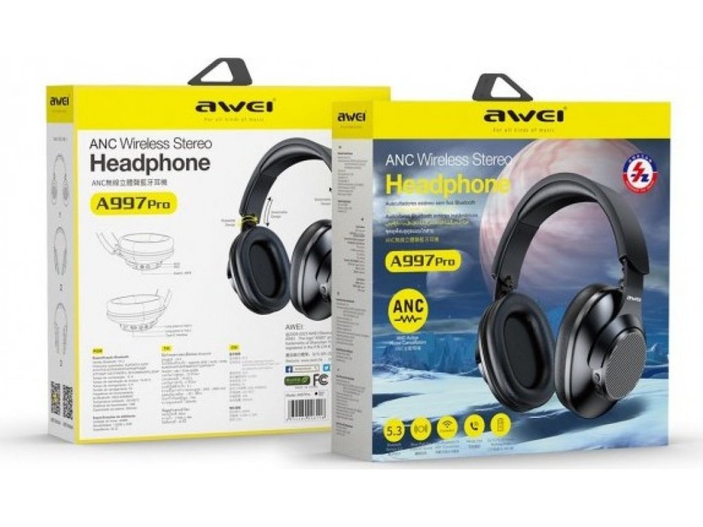 Náhlavní bezdrátová sluchátka Awei A997 Pro přináší kvalitní a vyvážený zvuk. Dokonalé soukromí vám při poslechu zajistí funkce aktivního potlačení hluku ANC, která reverzními zvukovými vlnami ruší a tlumí hluk z okolí. Pro své bezpečí si můžete nastavit míru propustnosti, abyste důležité a rizikové zvuky uslyšeli, zatímco jdete po ulici. 15h výdrž sluchátek při zapnuté ANC funkci vám zajistí celý den nepřetržitého poslechu na cestách, zatímco přes noc si sluchátka zase dobijete. Díky Bluetooth 5.3 bude vaše spojení stabilní a bez prodlev. Spárovat je tak můžete i s počítačem a využít je k poslechu při hraní. Preferujete drátové propojení? Sluchátka mají i konektor Jack 3,5mm pro drátové propojení pře audio kabel. S integrovaným mikrofonem s nimi vyřídíte hovor z telefonu i hovor na počítači či jiném zařízení. Náhlavní most je opatřen polstrováním, aby byla sluchátka pohodlná pro dlouhodobé nošení. Samozřejmostí je nastavitelná rozteč, aby sluchátka dobře sedla na hlavu jakékoliv velikosti. Měkké náušníky obemknou vaše uši a utlumí hluky okolí, abyste si užili svůj poslech.