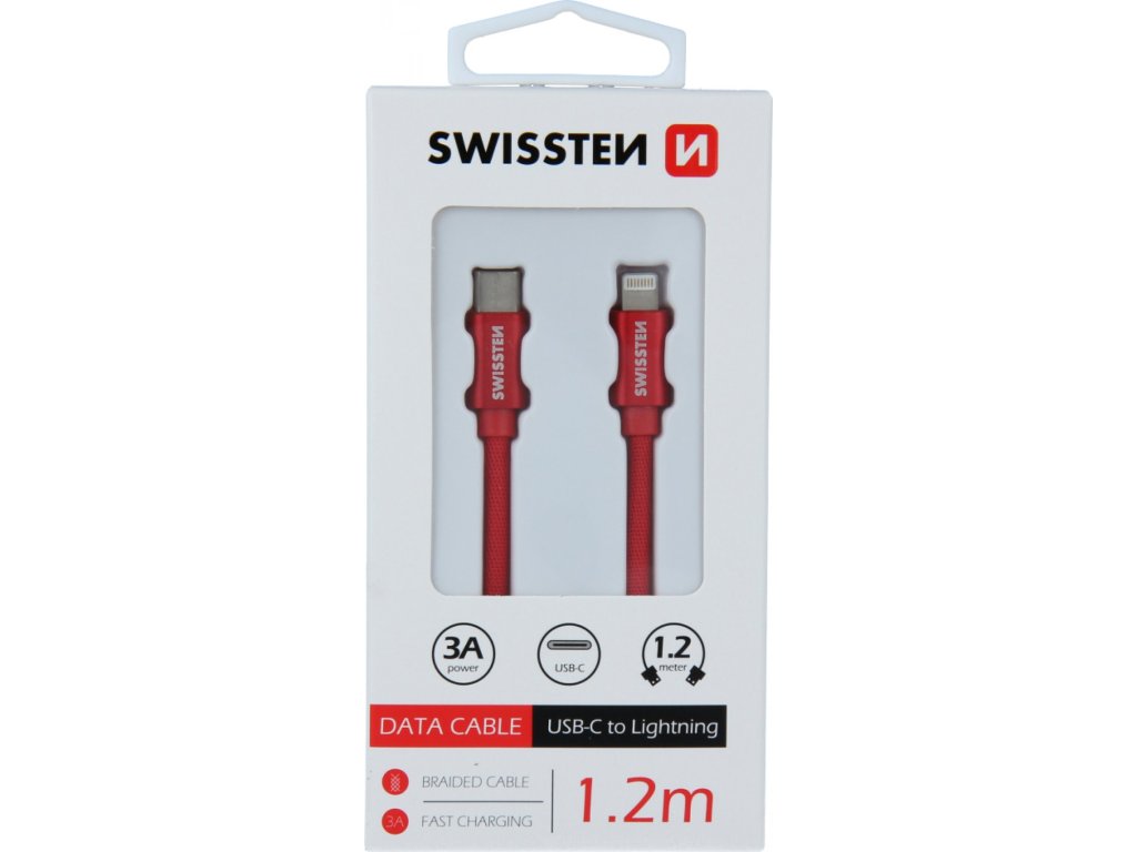 Datový kabel swissten textile usb-c / lightning 1,2 m červený