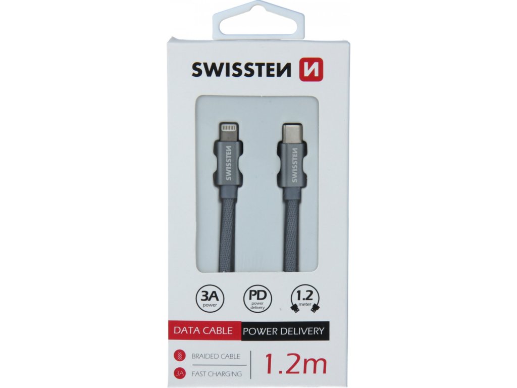 Datový kabel swissten textile usb-c / lightning 1,2 m šedý