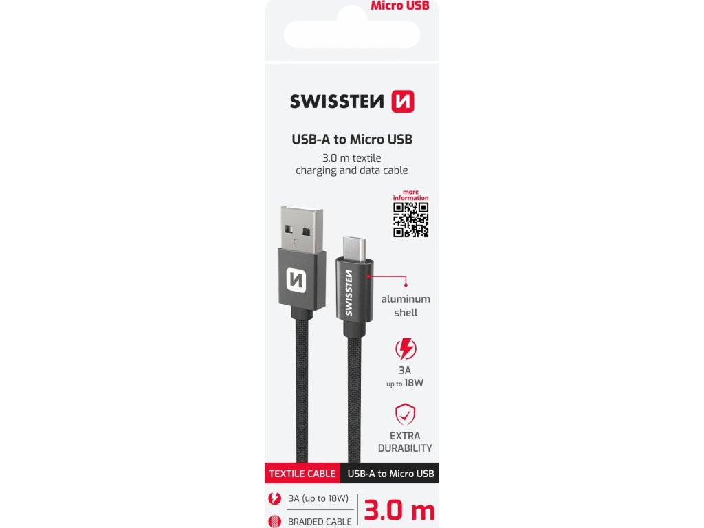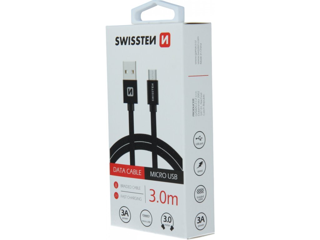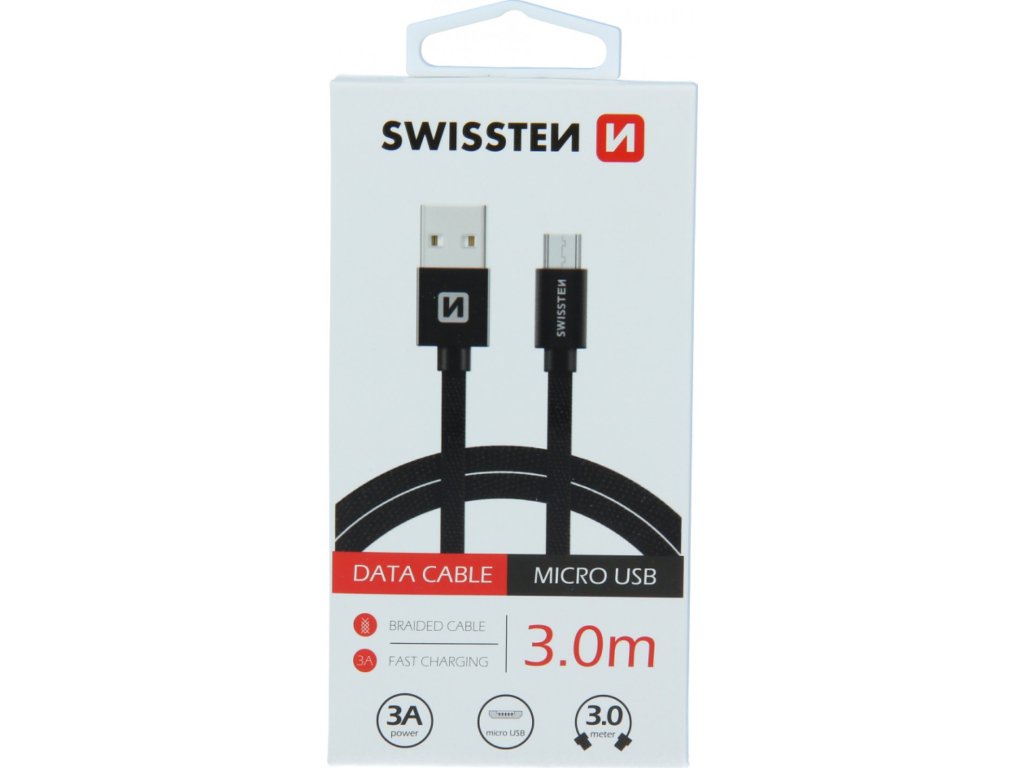 Datový kabel swissten textile usb / micro usb 3,0 m černý