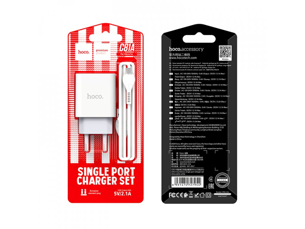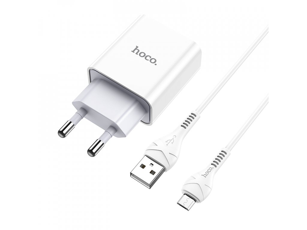 HOCO C81A 5V 2,1A Asombroso Jednoportový nabíjecí adaptér EU s 1m microUSB kabelem - bílý