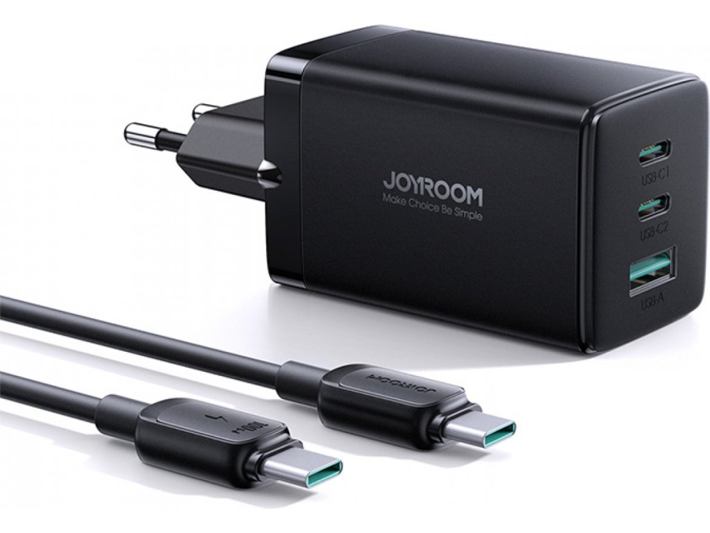 JOYROOM TCG01 65W Type-C*2+USB GaN Ultra Fast Charger with 1.2M Dual Type-C 100W Cable EU Plug Black CCC/CE/FCC/RoHS Certified