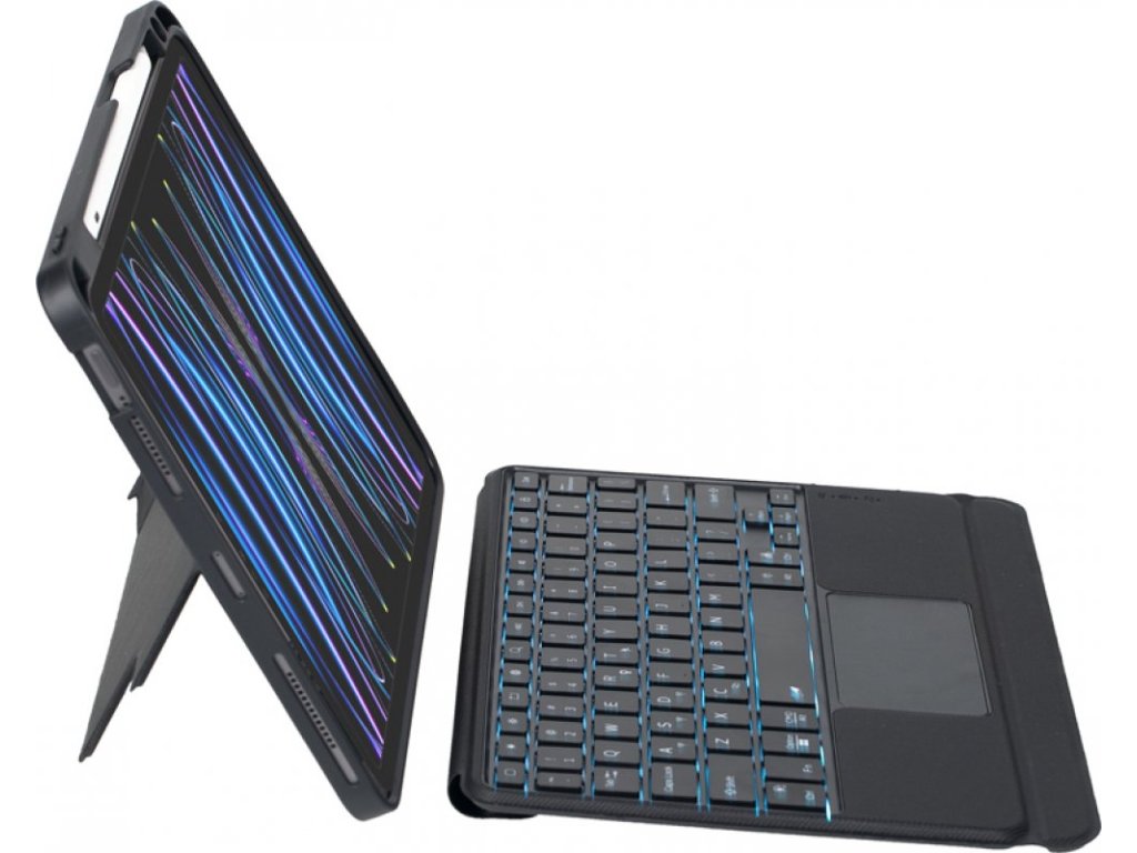 Jednou z největších výhod tohoto krytu je podsvícená Bluetooth klávesnice. To znamená, že můžete psát i v těch nejtemnějších místnostech, aniž byste museli hledat světlo nebo zapínat displej svého iPadu. Navíc se klávesnice snadno připojí k vašemu iPadu přes Bluetooth, takže nemusíte mít starosti s kabely a dráty. Svou produktivitu můžete zvýšit pomocí gest s více prsty na trackpadu.