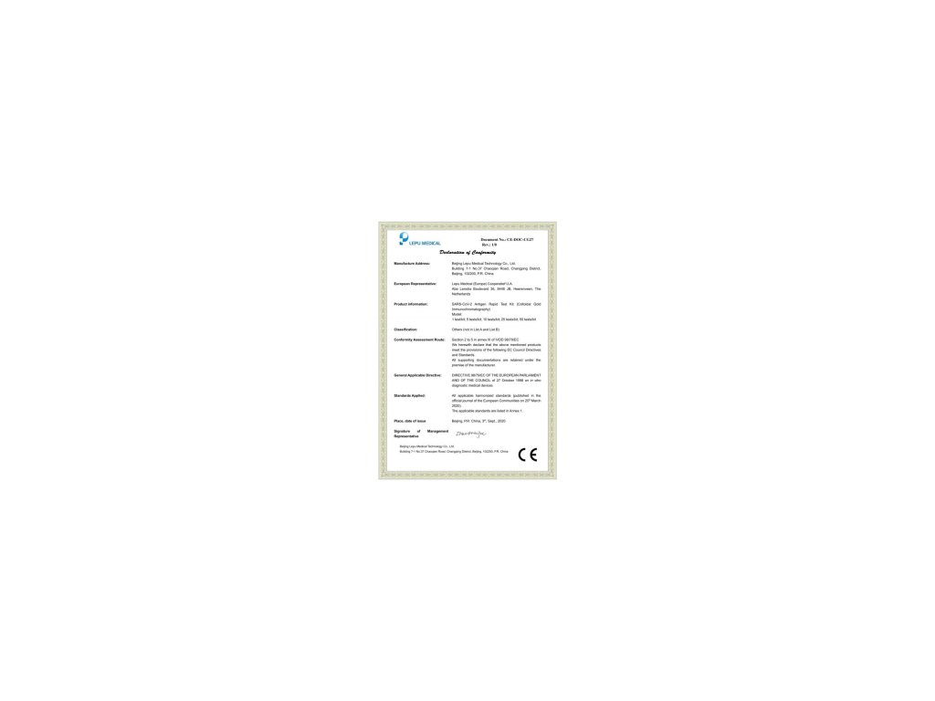 Souprava je určena ke kvalitativní detekci antigenu 2019-nCoV v klinickém vzorku. Testovací kazeta je založena na specifické reakci protilátka-antigen a technologii imunoanalýzy. Společnost Lepu Medical Technology (Beijing) Co., Ltd., založená v roce 1999, se specializuje na vývoj, výrobu a prodej špičkových zdravotnických prostředků.