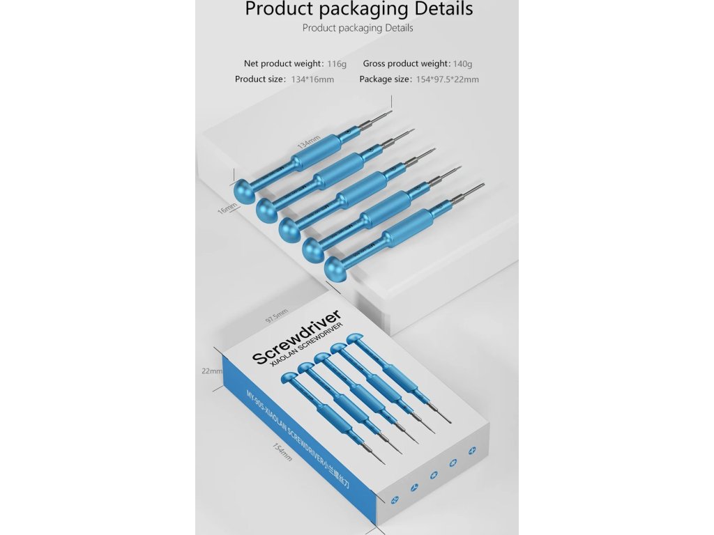 MAANT MY905 (5v1) je sada pěti precizních šroubováků s mimořádně tvrdými magnetickými hroty z kvalitní slitiny, určená pro servisní práce na mobilních telefonech, noteboocích a další jemné elektronice. Každý šroubovák má hliníkové tělo, ergonomickou protiskluzovou rukojeť a otočnou horní část pro pohodlné a přesné šroubování.