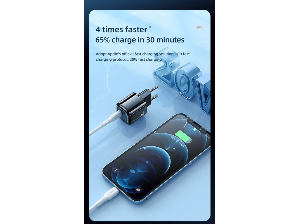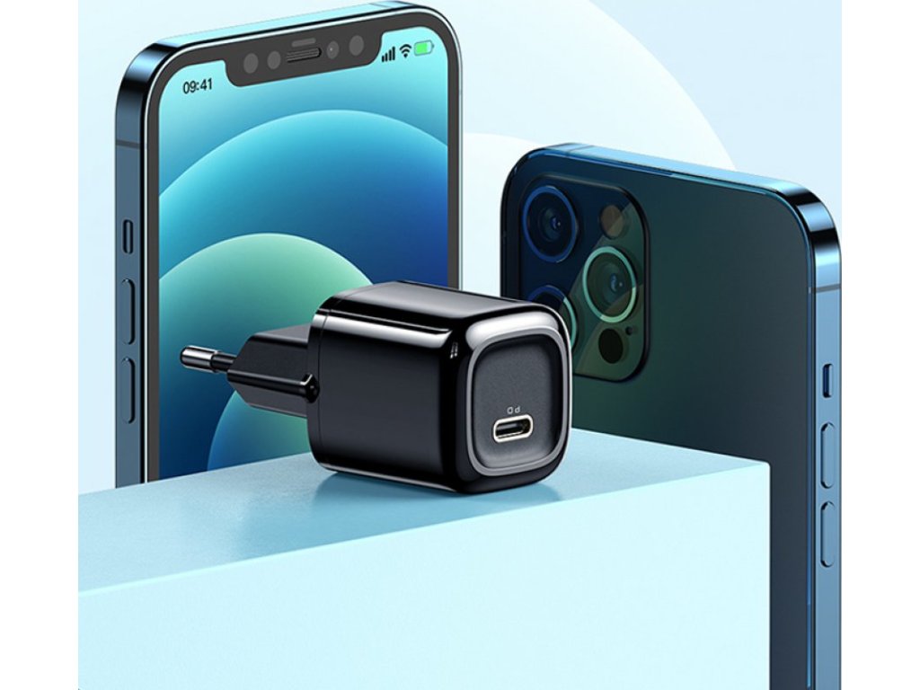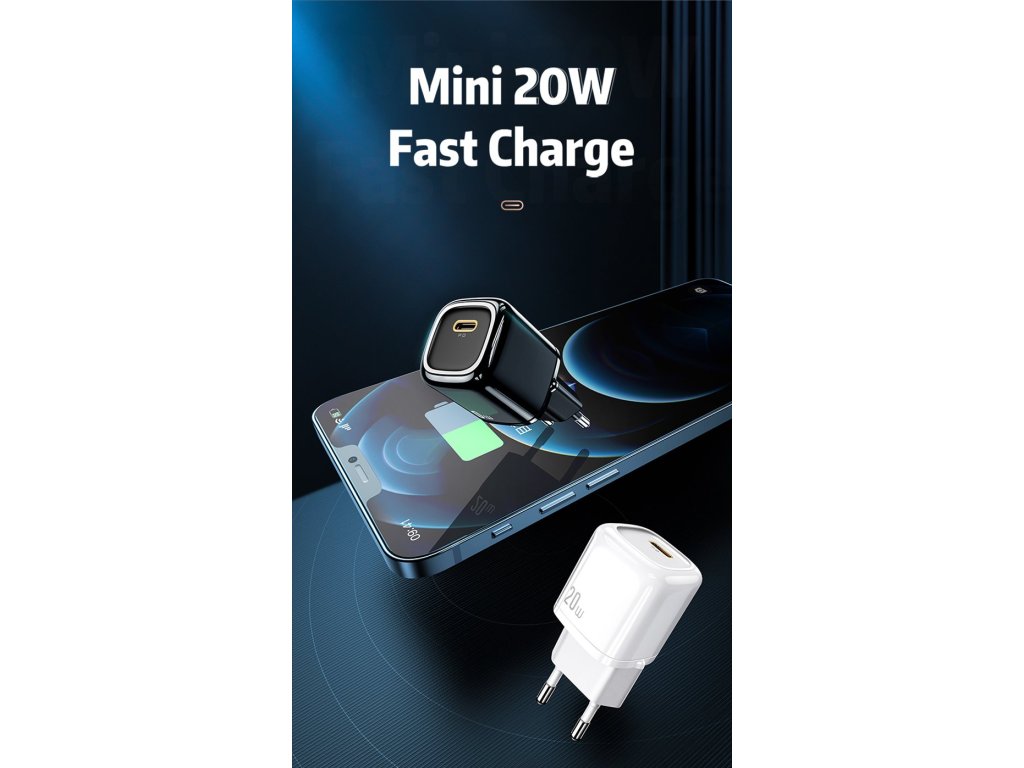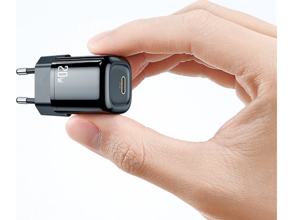 Napájecí mini nabíječka s portem USB-C. Navržen tak, aby fungovala s většinou populárních zařízení napájených přes USB, jako jsou iPhony a telefony se systémem Android.
