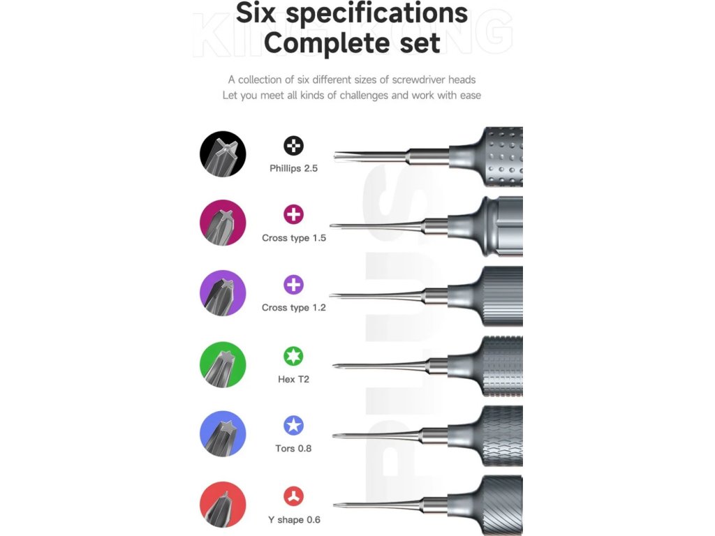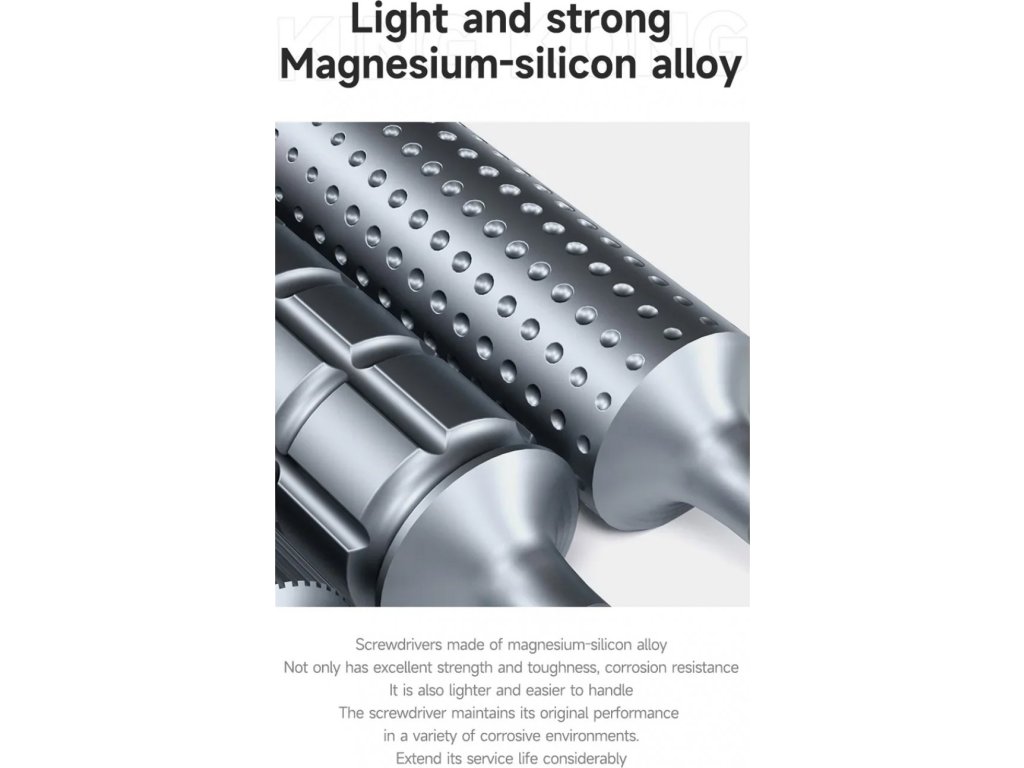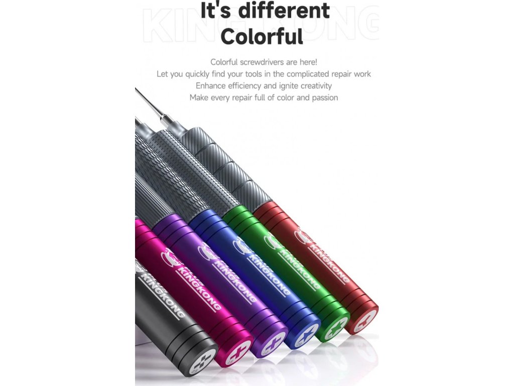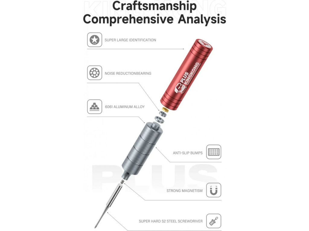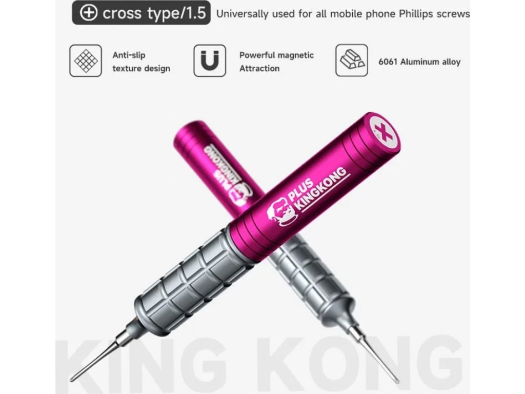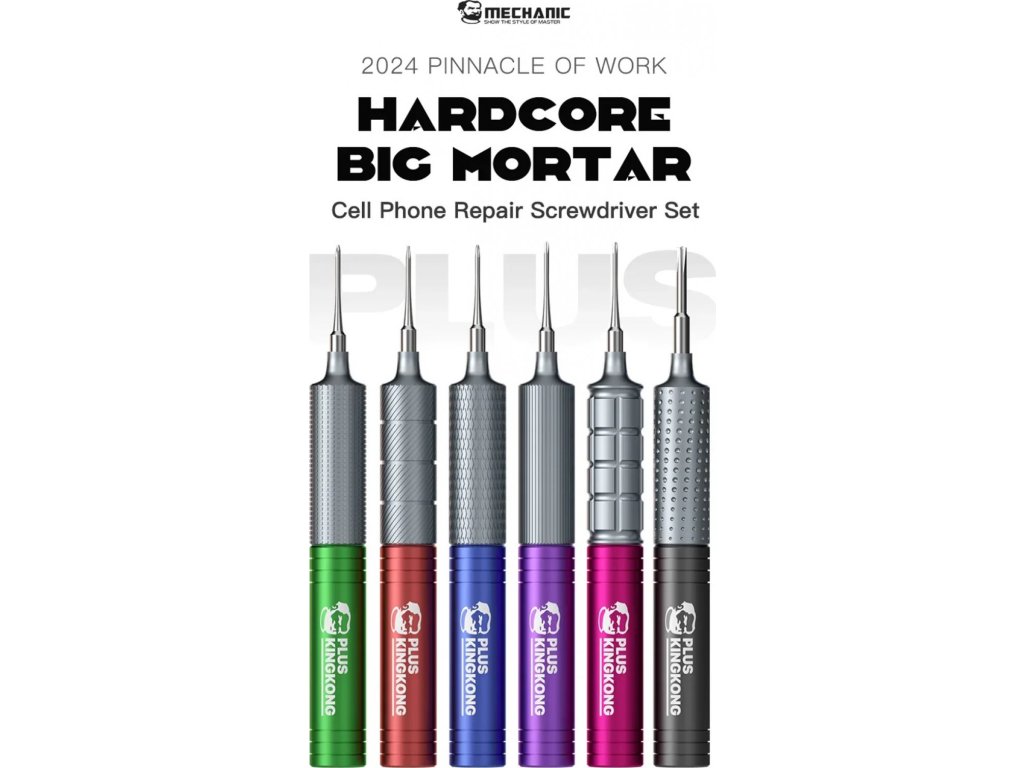 Profesionální sada precizních šroubováků MECHANIC King Kong s vysokou tvrdostí bitů (HRC 60) určená speciálně pro opravy mobilních telefonů a elektroniky. Každý šroubovák má pevný magnetický hrot a ergonomickou, protiskluzovou otočnou rukojeť, která zajistí pohodlnou, přesnou a rychlou manipulaci při každodenním servisu zařízení.