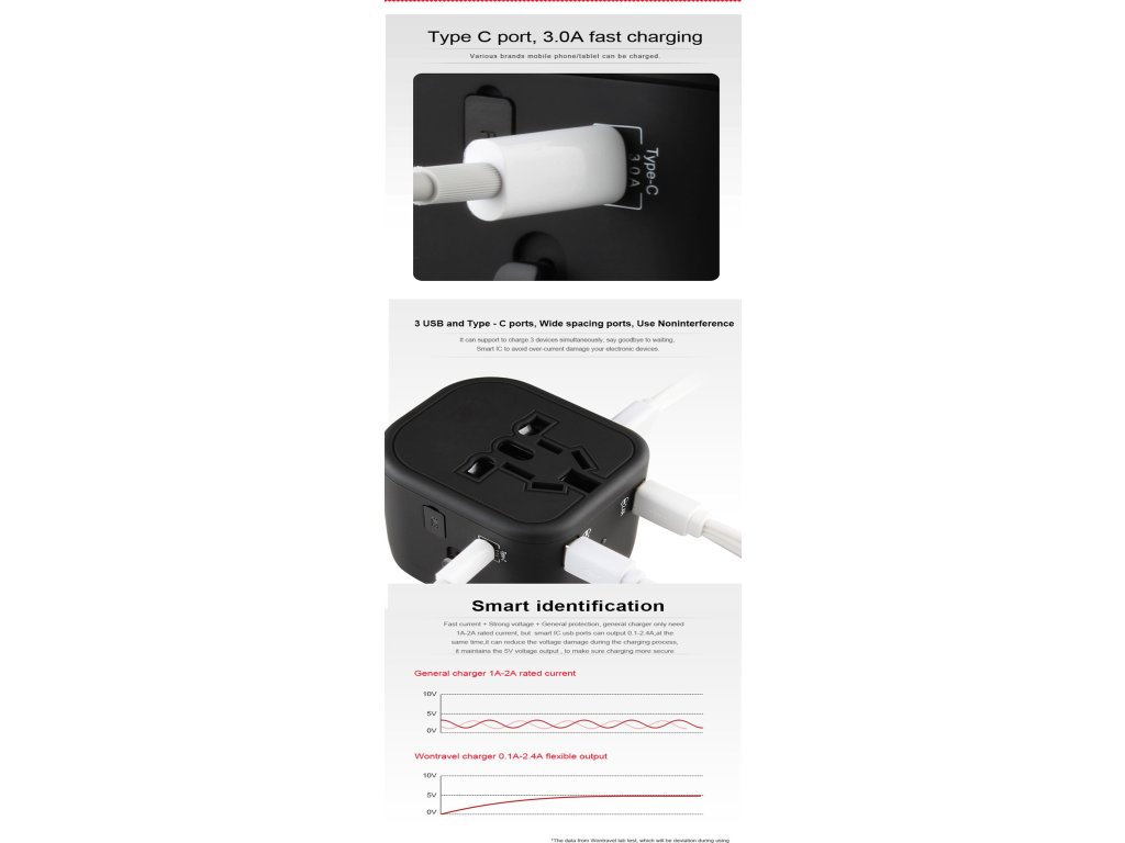 Multifunkční cestovní adaptér se 3 USB + 1 USB-C porty