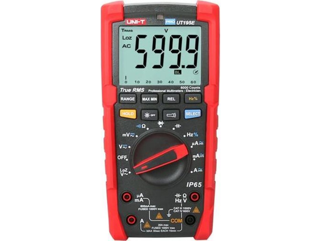 Multimetr UT195E je velmi odolný přístroj určený pro elektrikáře, opraváře, údržbáře a servisní techniky. Je vhodný pro každodenní použití v i těch nejdrsnějších podmínkách. Přístroj vydrží pád ze 2m a díky stupni krytí IP65 poskytuje vynikajicí ochranu vůči vodě a prachu. Díky TrueRMS můžete přesně měřit i nesymentrické střídavé napětí a proud.