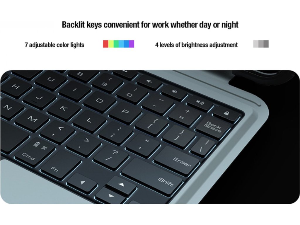 Podsvícená klávesnice je vybavena 7 barevnými režimy a 4 úrovněmi jasu, což vám umožňuje pohodlně pracovat jak ve dne, tak i v noci. Díky 500mAh baterii nabízí dlouhou výdrž – až 55 hodin bez podsvícení a 5 hodin s podsvícením. Klávesy jsou navíc tiché, takže nebudou rušit při práci v tichém prostředí, jako jsou například schůzky nebo přednášky.