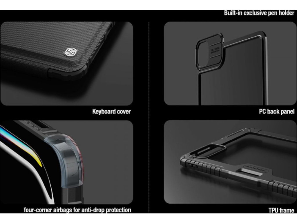 Nillkin Bumper GO Keyboard Case (Backlight Version) je prémiový ochranný obal navržený pro náročné uživatele, kteří hledají komplexní ochranu a maximální funkčnost pro svůj iPad. Obal kombinuje odolnou třívrstvou konstrukci, která zajišťuje ochranu před nárazy, poškrábáním a pády, splňující americké vojenské standardy. Tento obal je ideální pro pracovní nasazení, ale i pro běžné každodenní používání.