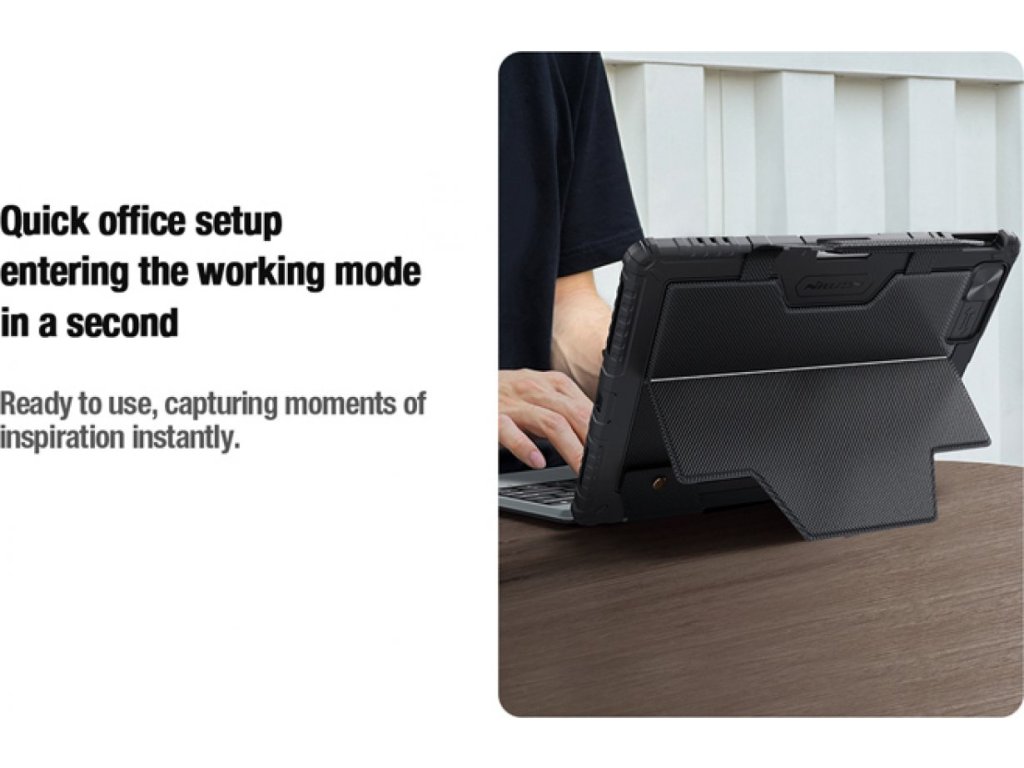 Nillkin Bumper GO Keyboard Case (Backlight Version) je prémiový ochranný obal navržený pro náročné uživatele, kteří hledají komplexní ochranu a maximální funkčnost pro svůj iPad. Obal kombinuje odolnou třívrstvou konstrukci, která zajišťuje ochranu před nárazy, poškrábáním a pády, splňující americké vojenské standardy. Tento obal je ideální pro pracovní nasazení, ale i pro běžné každodenní používání.