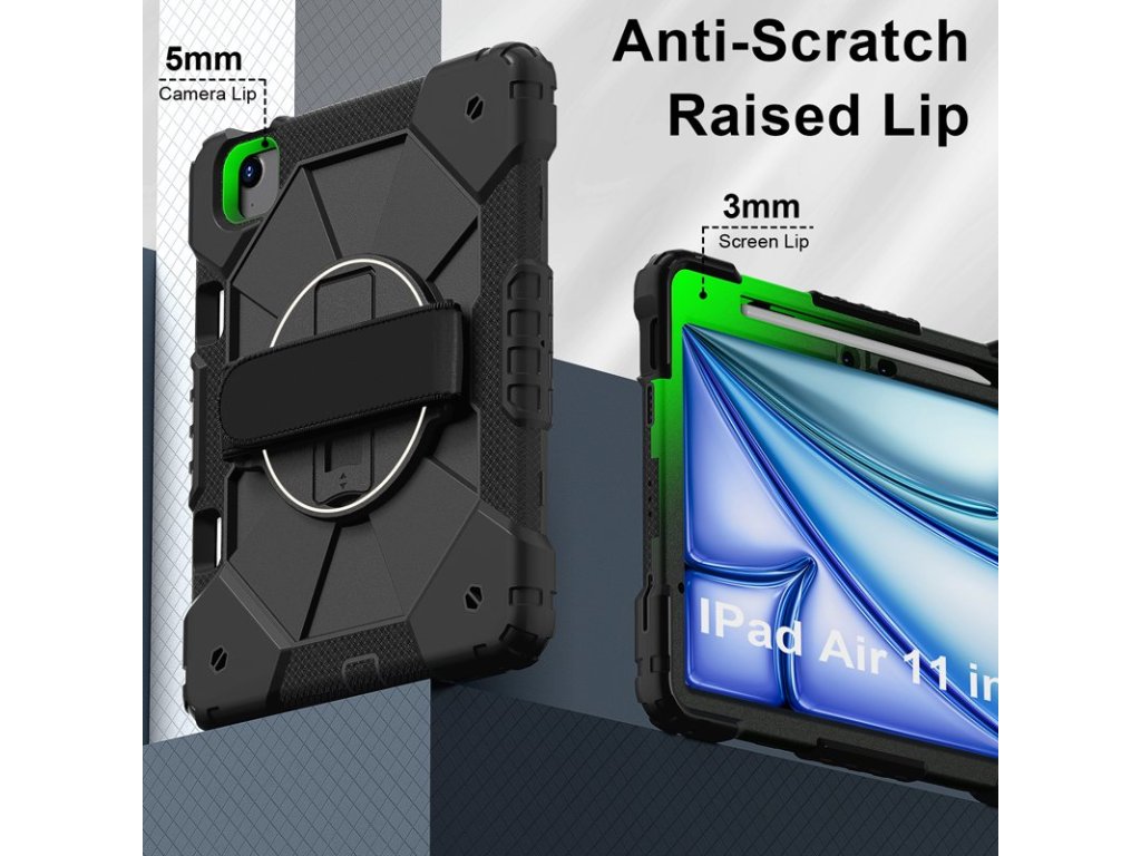 Tento outdoorový obal pro iPad Air 11" (2024) je navržen pro maximální ochranu a praktičnost. Jeho třívrstvá konstrukce zajišťuje odolnost proti pádům, nárazům a poškrábání. Ochrana je podpořena zvýšenými okraji kolem obrazovky a kamery, které zabraňují přímému kontaktu se zemí. Vestavěný stojánek umožňuje nastavit iPad do různých úhlů (30°, 45°, 60°), což zajišťuje pohodlí při sledování videí, práci nebo hraní her.