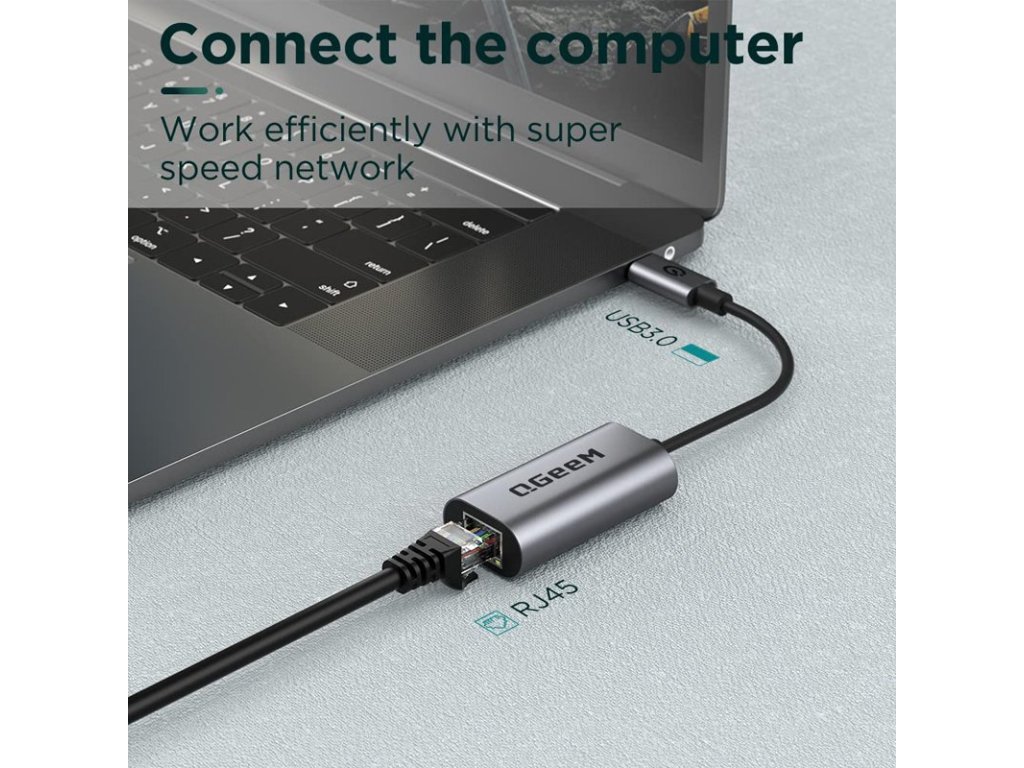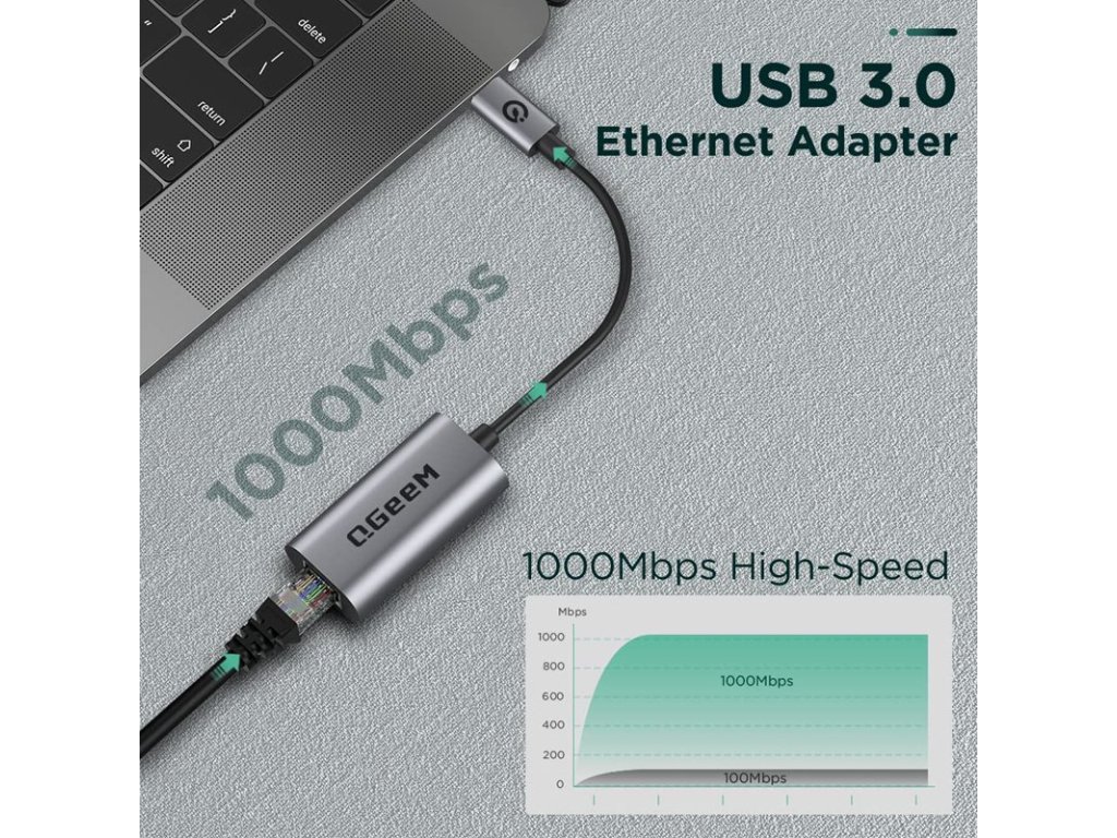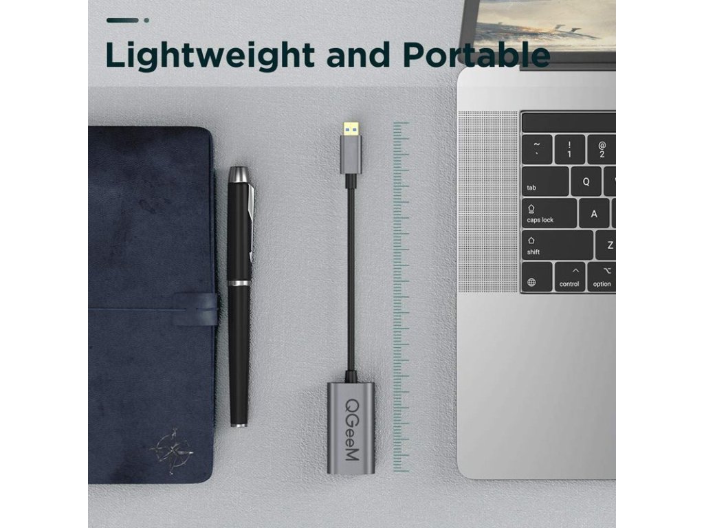 QGeeM UA05-A je kompaktní a výkonný adaptér, který umožňuje připojit zařízení bez Ethernet portu k drátové síti přes USB 3.0. Poskytuje stabilní a vysokorychlostní přenos dat až 1000 Mbps. Adaptér je ideální pro použití s notebooky, MacBooky, konzolemi Nintendo Switch a Wii, a dalšími zařízeními vybavenými USB portem.