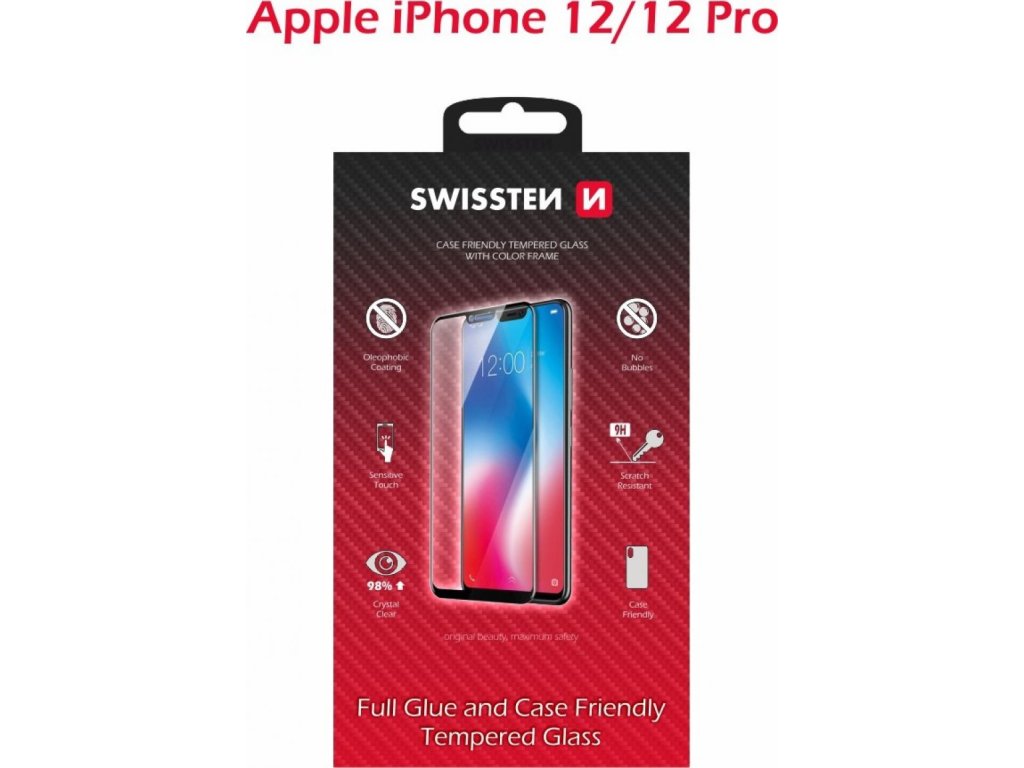 Sklo swissten full glue, color frame, case friendly pro apple iphone 12/12 pro černé