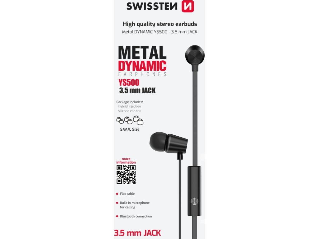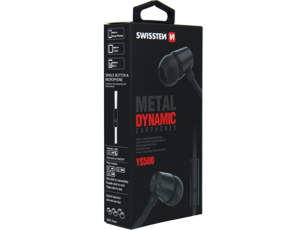 Sluchátka SWISSTEN YS500 z modelové řady METAL DYNAMIC se vyznačují skloubením vysokové kvality díky kovovému tělu a příznivé ceny. Sluchátka disponují konektorem 3,5mm jack, vestavěným mikrofonem a funkčním tlačítkem. Baleno v blistru SWISSTEN.