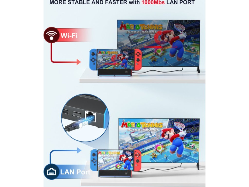 SW2301DA multifunkční TV dokovací stanice pro Nintendo Switch / Switch OLED – s LAN, HDMI a USB