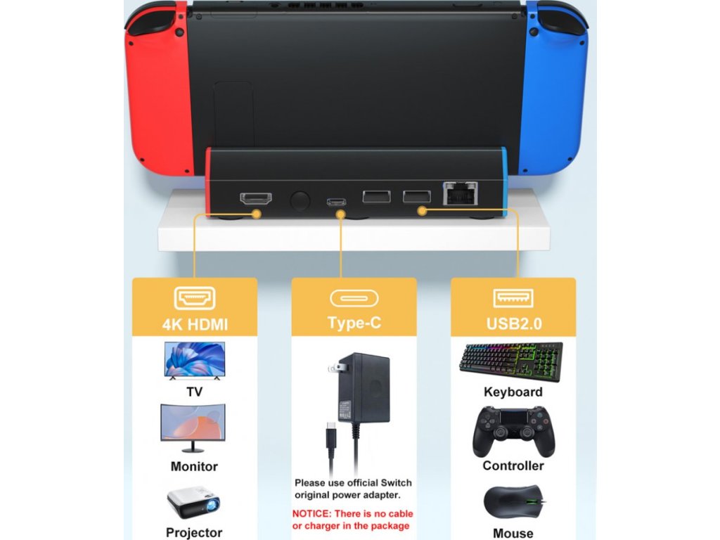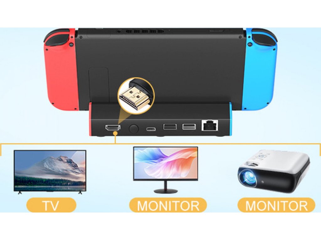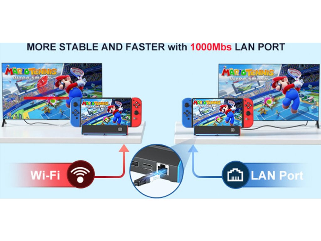 SW2301DA je výkonná a přenosná dokovací stanice navržená pro Nintendo Switch a Switch OLED, která poskytuje plnohodnotné připojení k TV i rozšířenou konektivitu. Umožňuje zobrazení ve 4K přes HDMI, rychlé nabíjení přes USB-C, připojení periferií přes 3× USB porty, a navíc má integrovaný RJ45 LAN port pro stabilní kabelové připojení k internetu.