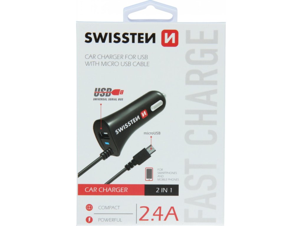 Swissten cl autonabíječka micro usb a usb 2,4a power