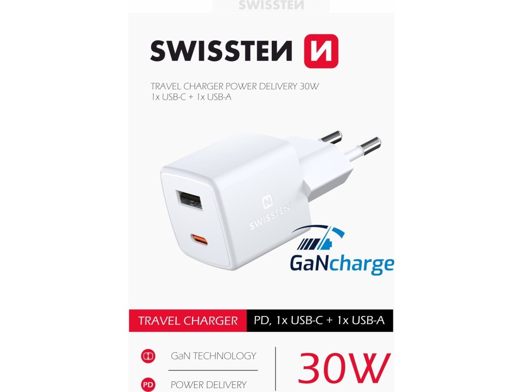 Nabíječka z nové řady nabíječek SWISSTEN s revoluční technologií GaN. Výstupním portem USB-C a USB-A je vybaven technologií rychlého nabíjení Power Delivery a Qualcomm s celkovým výkonem 30W. Baleno v blistru SWISSTEN