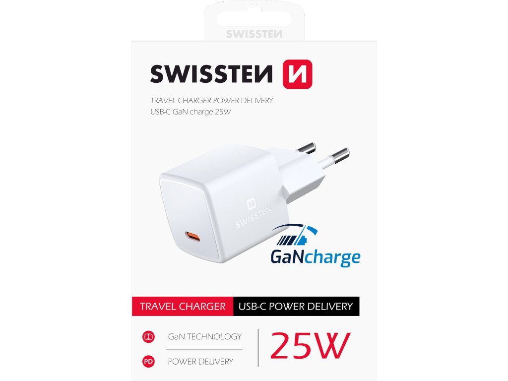 Swissten mini síťový adaptér gan usb-c 25w power delivery
