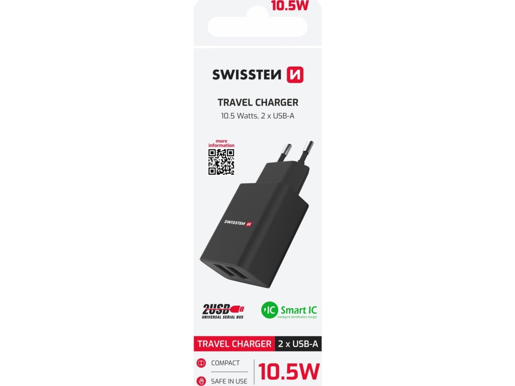 Swissten síťový adaptér smart ic 2x usb 2,1a power černý