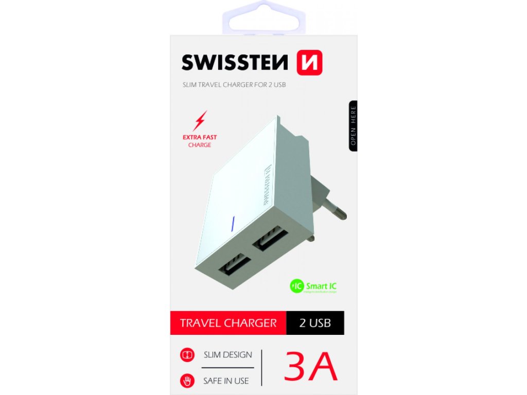 Swissten síťový adaptér smart ic 2x usb 3a power bílý