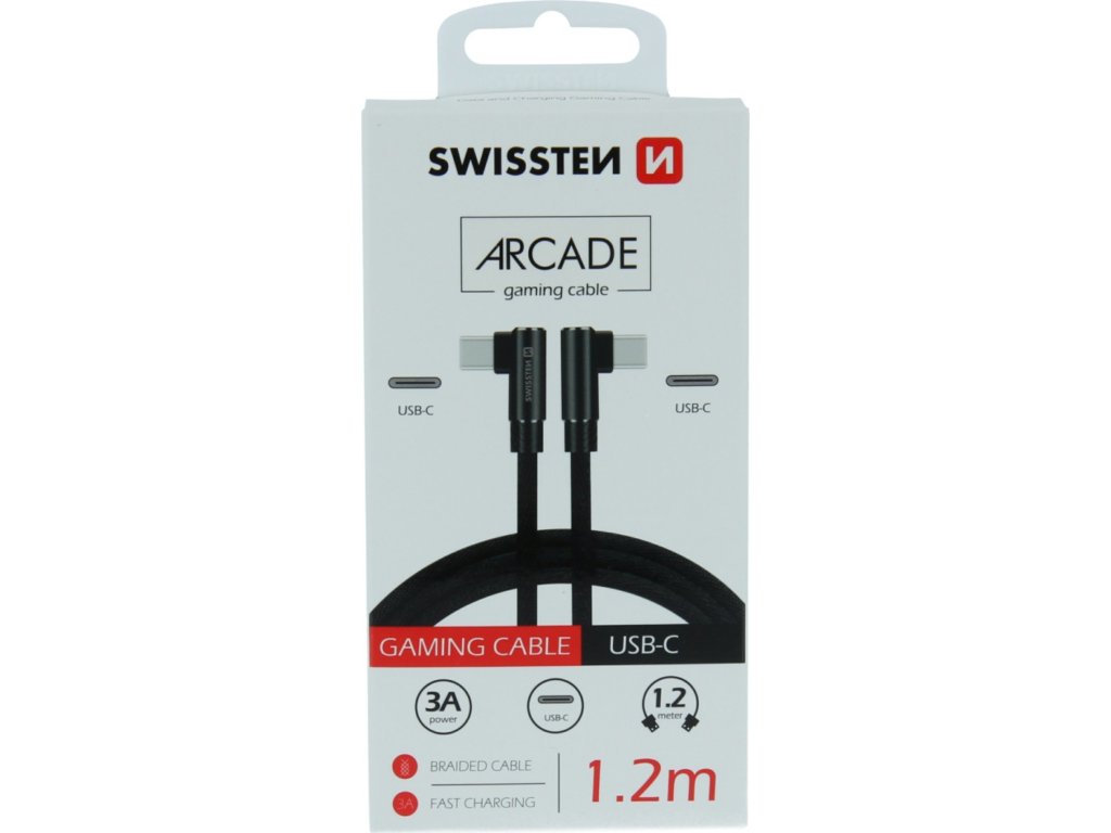 Datový a nabíjecí kabel Swissten Arcade je dlouhý 1,2 m a má konektor do L pro pohodlné nabíjení při hraní her nebo sledování videa. Kabel je zesílený a přenese tak větší proud (až 3A) a zvládne i rychlý přenos dat 480 Mb/s. Baleno v blistru Swissten